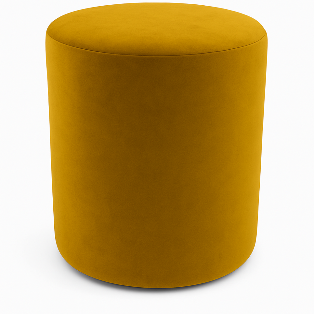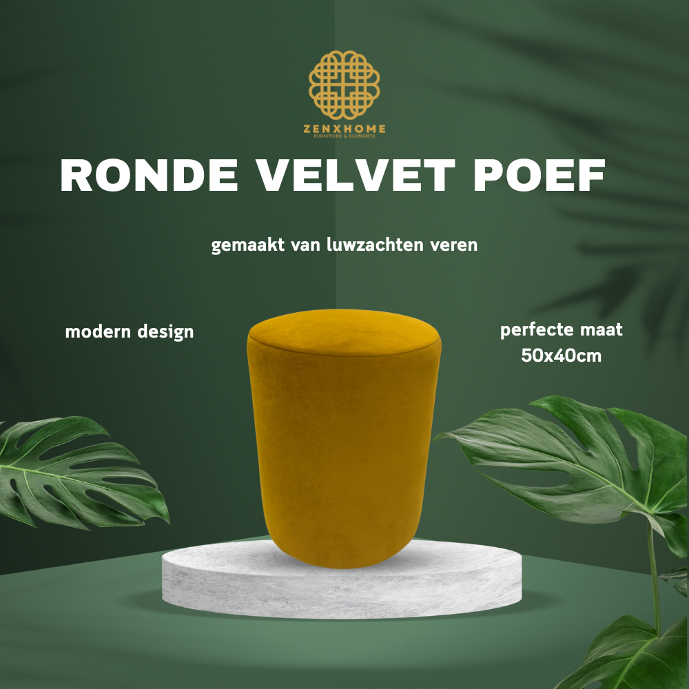 Ronde poef, velvet poef, poef okergeel, zitkruk velvet, luxe poef, moderne poef, poef 50x40 cm